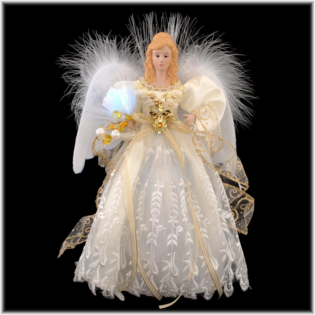 12 Inch Ivory And Gold Fiber Optic Angel Tree Topper