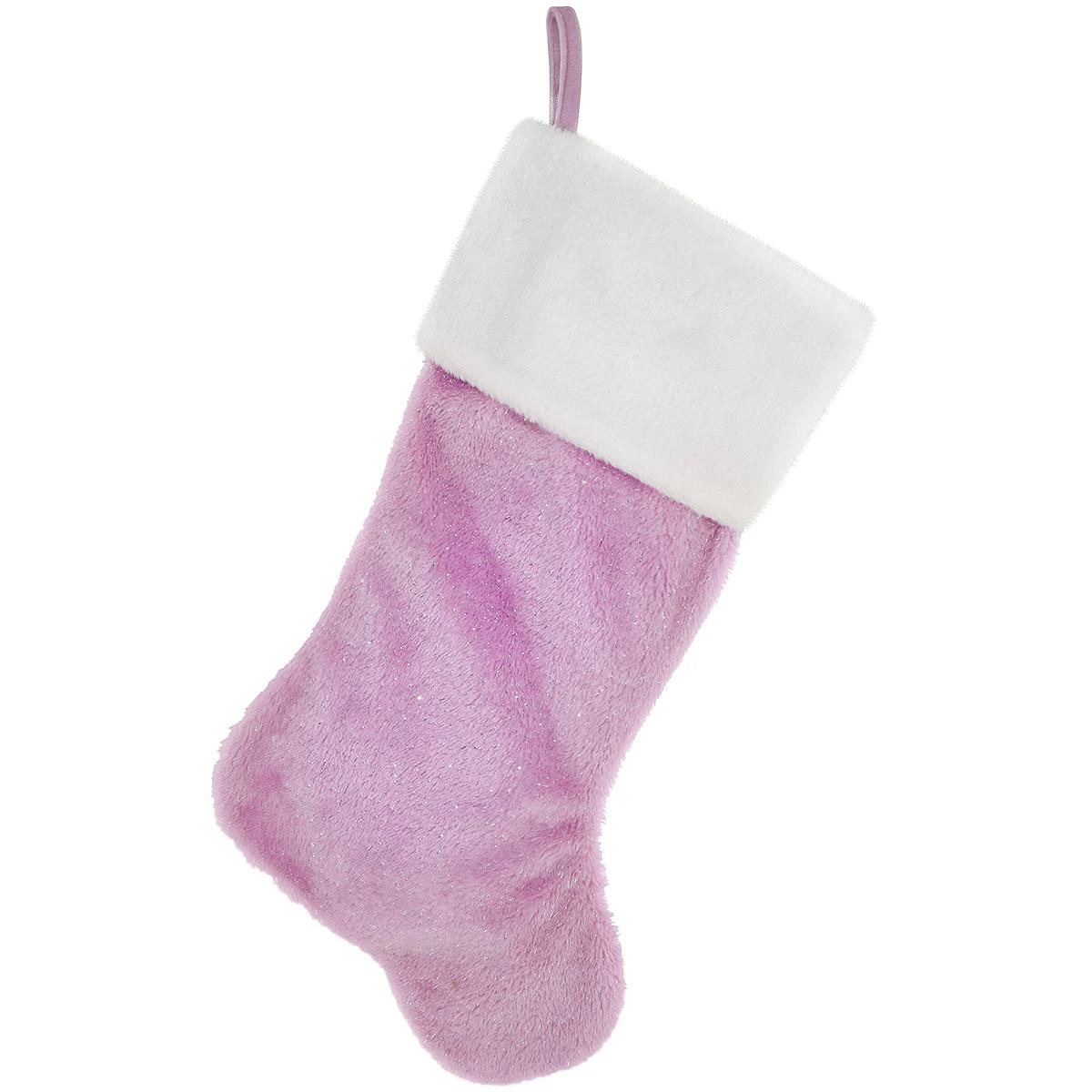 Sure to catch her eye, our 20½” purple sparkle stocking shimmers with glistening silver threads! Completely lined in purple satin, stocking is topped with a plush white cuff.