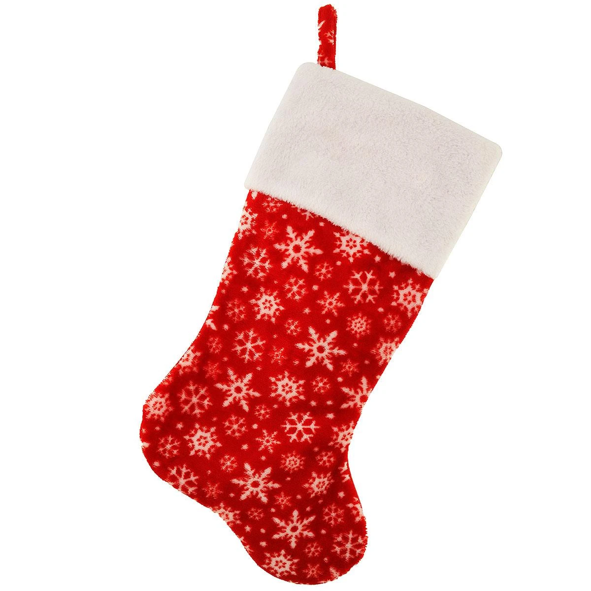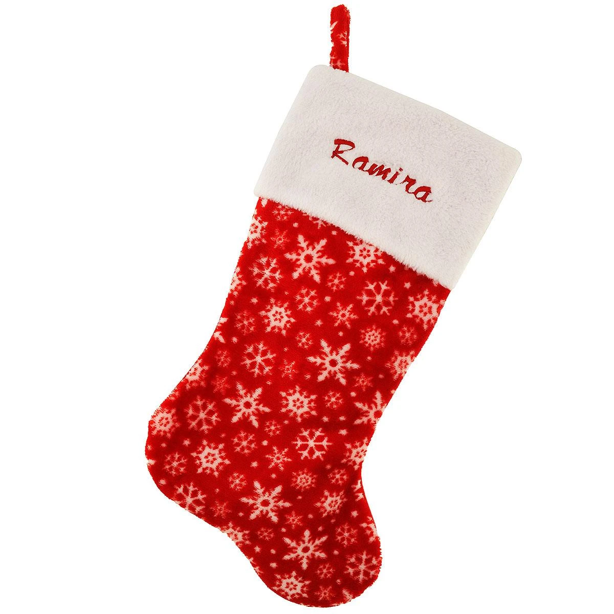 20.5 Inch Personalized Red Snowflake Stocking With Fur Cuff