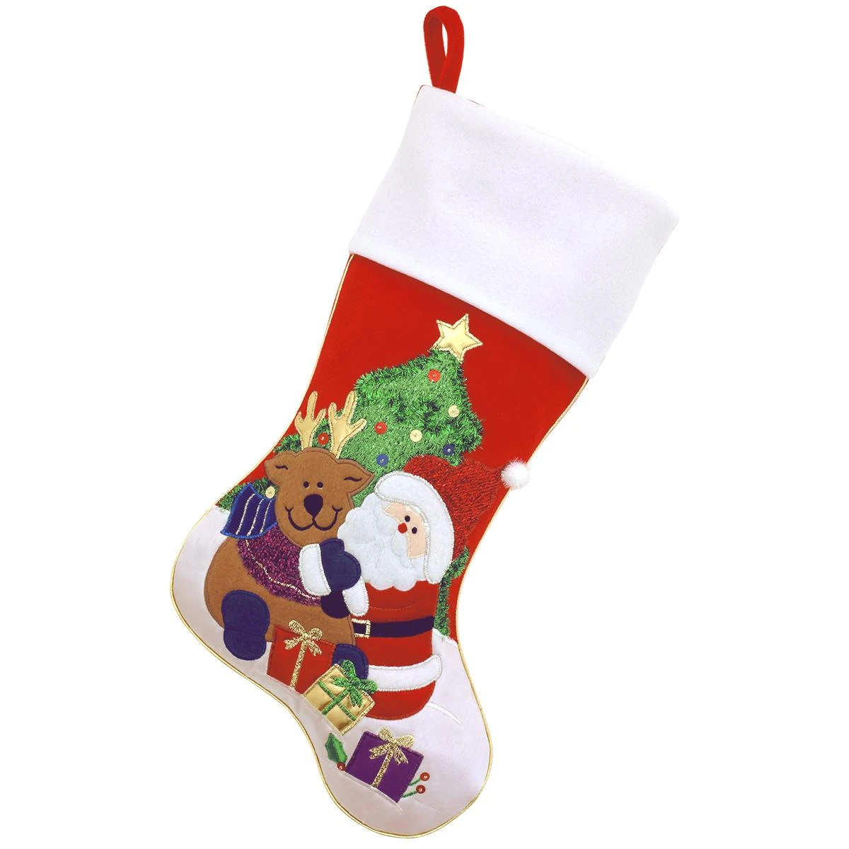 20.5 Inch Personalized Red Stocking, Santa With Reindeer And Gifts