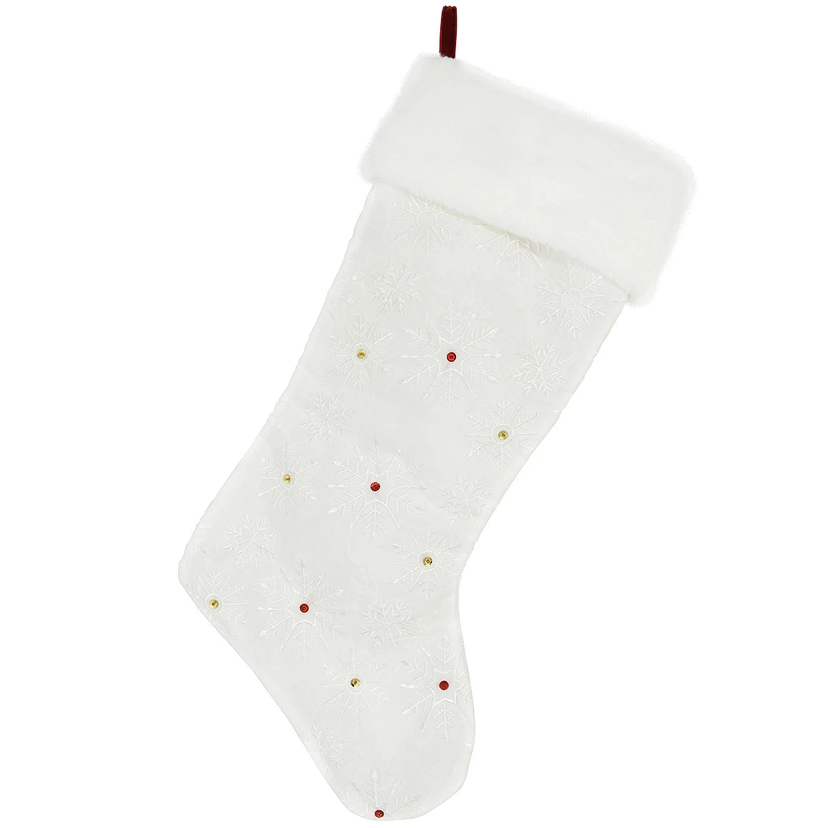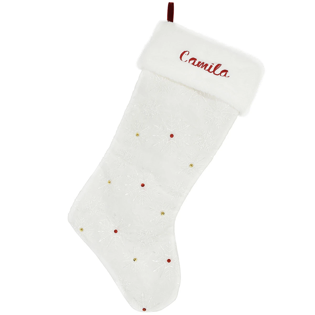 21 Inch Personalized White Stocking With Snowflakes And Sequins