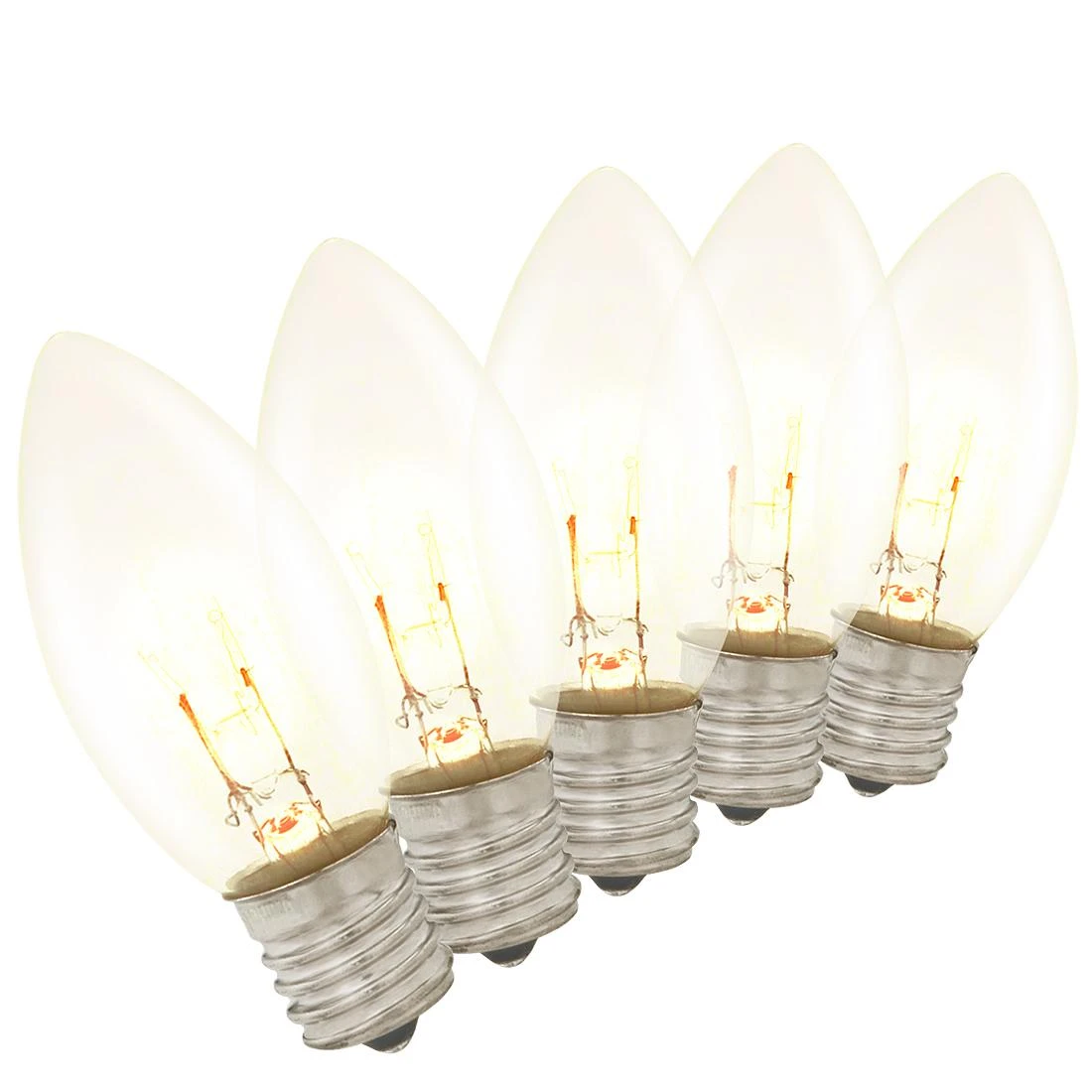 Restore a brilliant and elegant flair to that old light strand with this deLIGHTful pack of transparent C9 twinkle replacement lamps! These 25 clear twinkle C9 replacement lamps will shine brightly with a classically clean appeal. Commercial grade, these replacement bulbs feature weatherproof bases and fade-and peel-resistant coatings to withstand winter weather and corrosive ocean air.