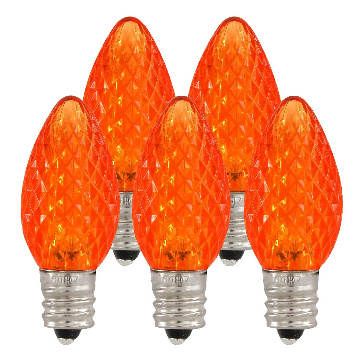 Isn’t it time you replaced the bulbs on your old C7 light strings with energy-saving LED lamps? This 25 count box of orange LED bulbs are exceptionally durable, stay cool to the touch, and come with a 5 year seasonal warranty. Indoor/outdoor. UL listed.
