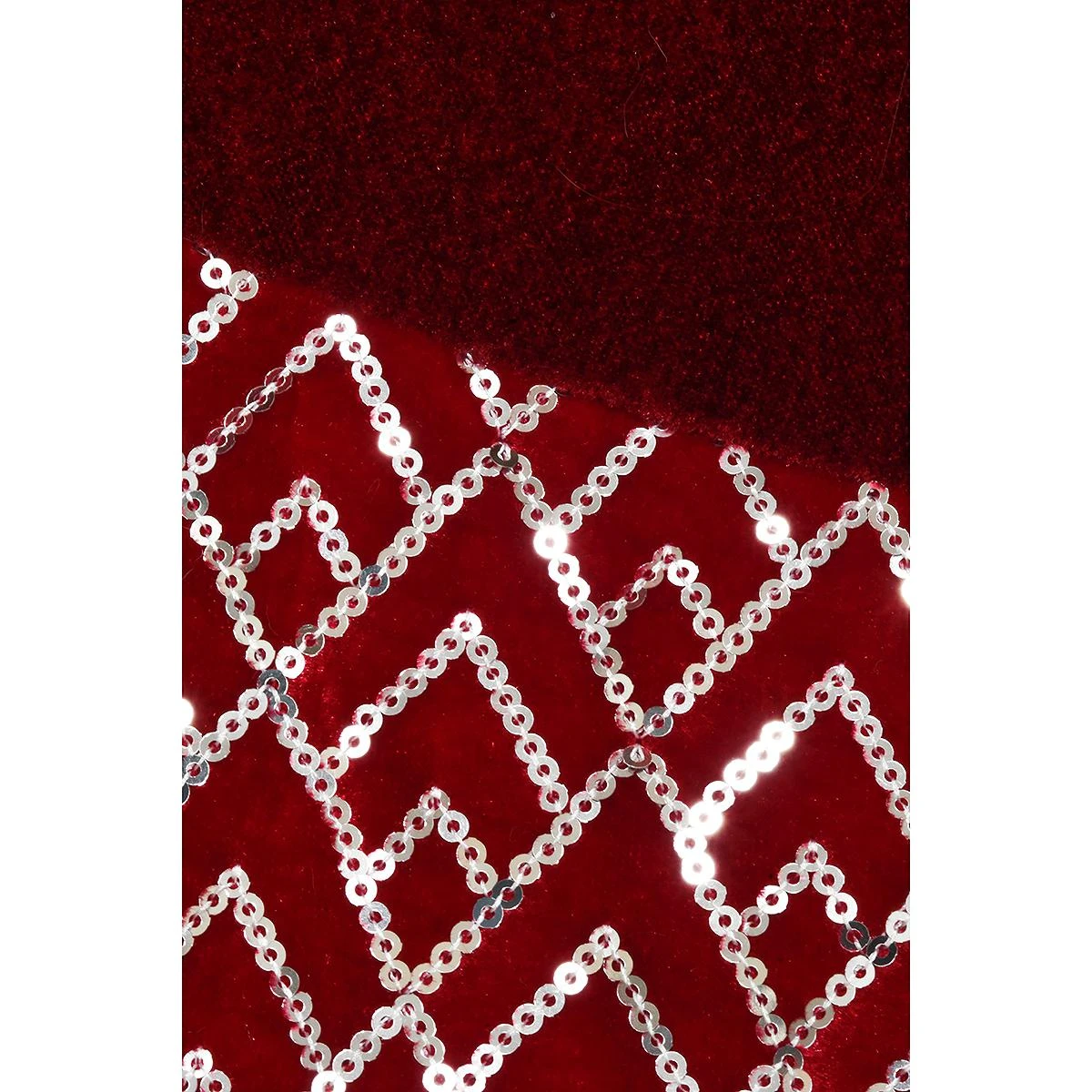 Add an opulent touch to your Christmas dรฉcor with this gorgeous 48″ tree skirt! Crafted of micro velvet in a ravishing burgundy hue, tree skirt is edged with an eye-catching pattern of shimmering silver sequins. Skirt is fully lined in burgundy sateen and features hidden Velcro strips to hold it securely in place.ย