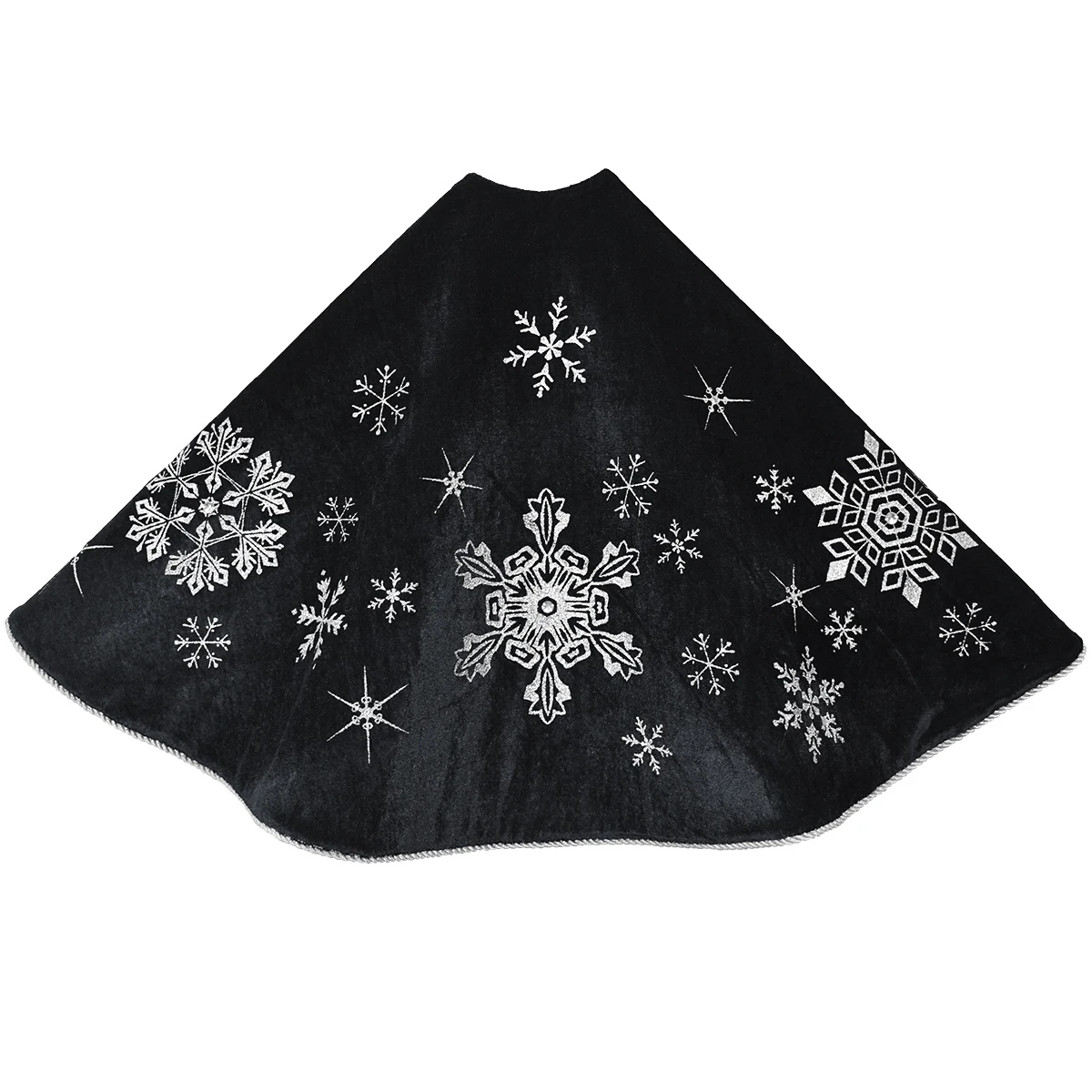 Wrap your tree in the beauty of sparkling snow. Crafted of micro velvet in an elegant hue of charcoal gray, our 48″ tree skirt twinkles with silver snowflakes and dazzling crystal gems. Fully lined in dark gray felt, this enchanting tree skirt features hidden Velcro strips to hold it securely in place.