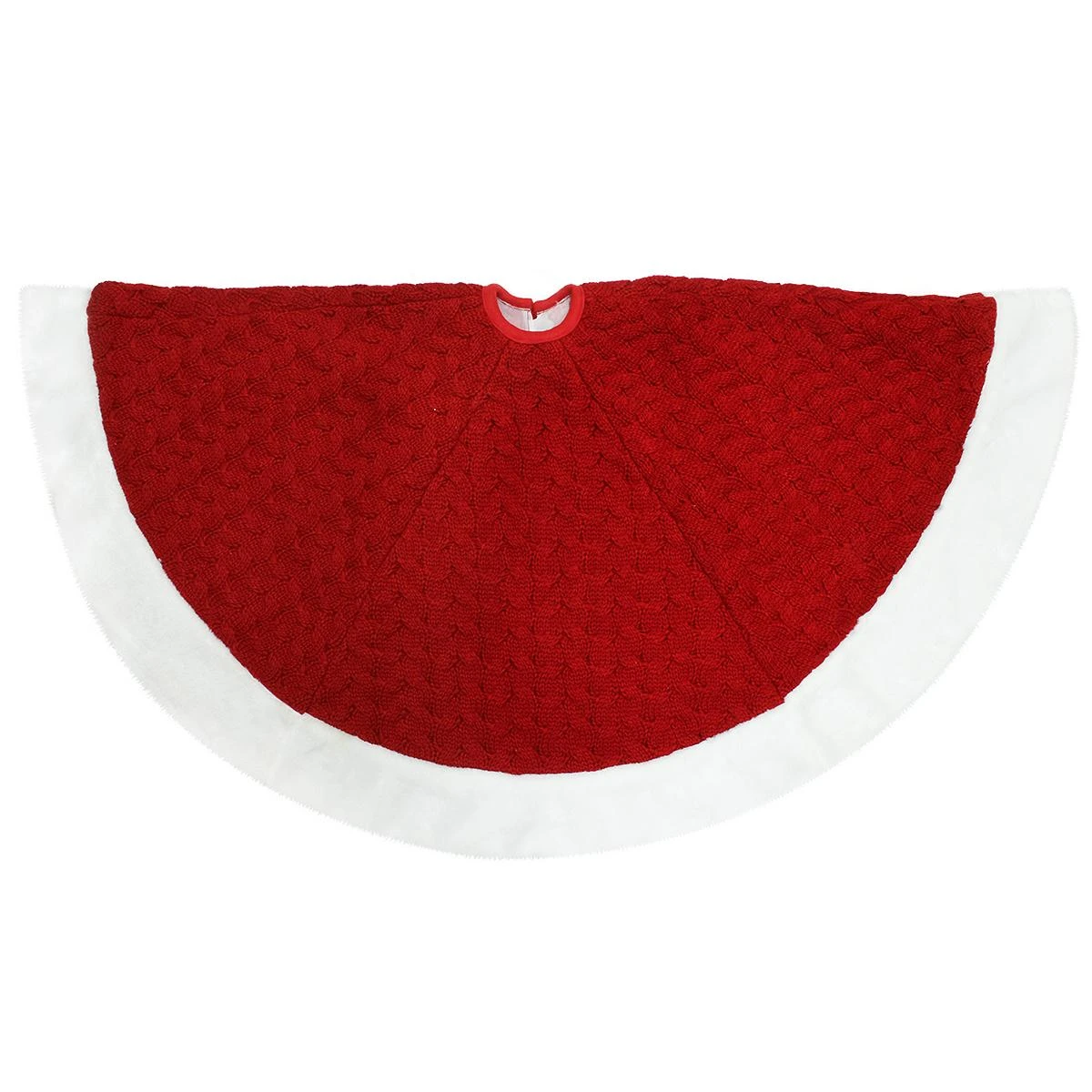 48 Inch Red Cable Knit Tree Skirt With White Border