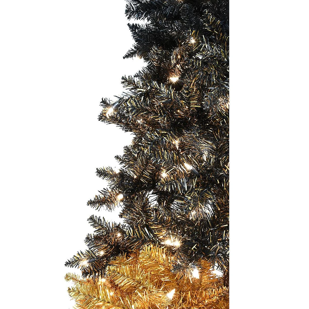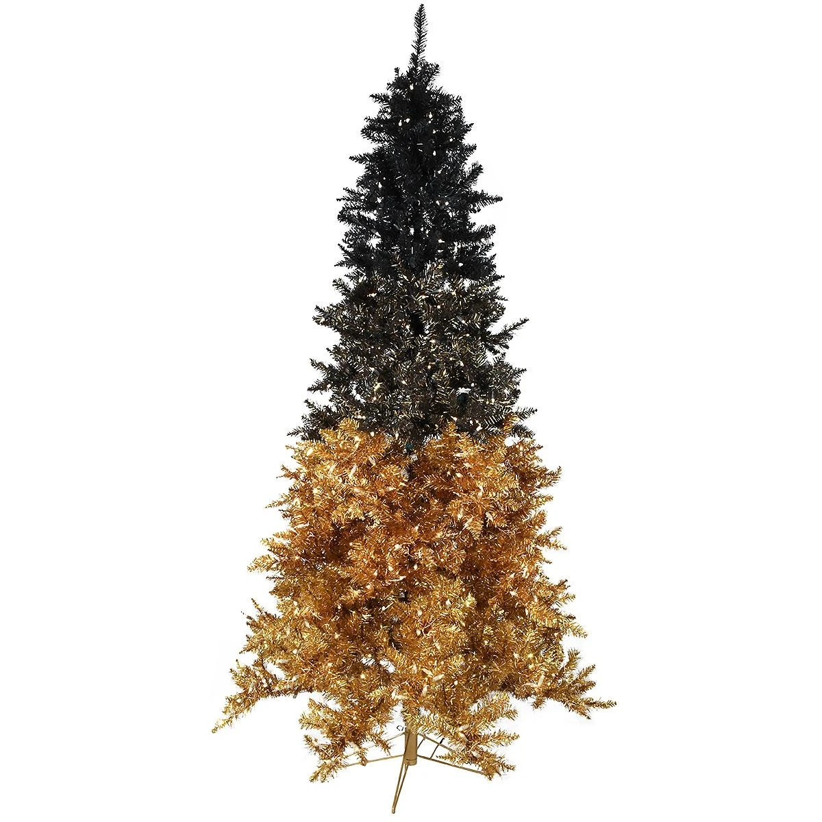 Deck the halls with this beautiful 7.5′ gold ombre tree pre-lit with 650 clear lights for a festive holiday glow that is sure to make you feel merry and bright! Tree features hinged branches with 1,364 matte tips, a 48″ diameter base and weighs 40 lbs. Includes a 3 year limited warranty.