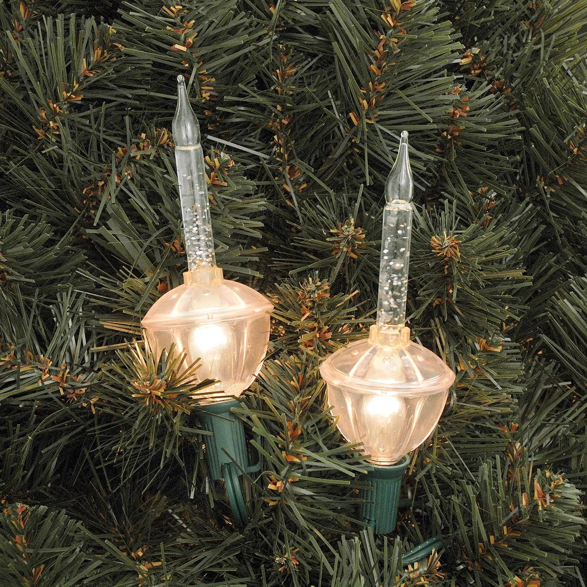 Bubbling with glittering elegance, this light set is sure to look dazzling in your holiday display! Our clear bubble light set comes with 7 bubble lights that bubble up with glitter when lit. This stylish and eye-catching set comes built with end-to-end cord construction and a green wire for indoor use only. Approximately 11½ ft. strand length.