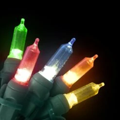 Warm White LED 50 Rectified Conical Twinkle Light Set On Green Cord