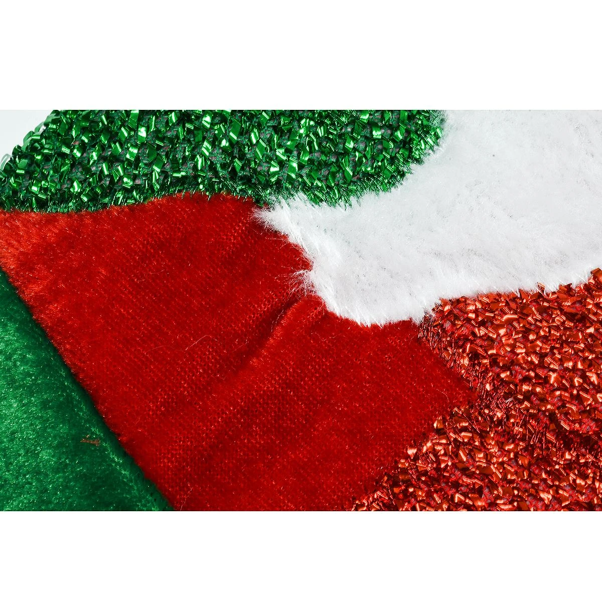 Oh my stars, what a beautiful tree skirt! Crafted of red velvet, this 48″ tree skirt features Santa reaching toward a galaxy of vibrant stars. Edged with contrasting green velvet, tree skirt features eye-catching metallic appliques, white plush accents, and a variety of shimmering stitching. Skirt is fully lined in green sateen and features hidden Velcro strips to hold it securely in place.
